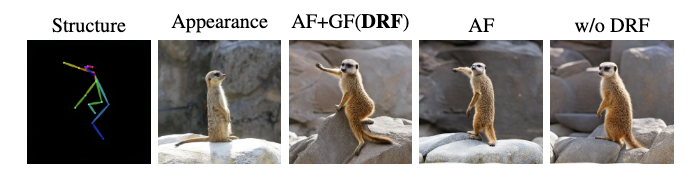 여기서 저자는 $I^a$와 $I^s$의 클래스가 다르다면 단순히 appearace와 structure를 나누는것만으로는 $I^g$에 두 특징을 반영하기 어렵다고 하고 있다. 위 사진에서 제일 오른쪽 사진을 보면 두 정보가 재대로 반영되지 않는 것을 볼 수 있다. 그래서 저자는 이걸 해결하기 위해 $z^g$가 생성될때동안 score guidance를 활용하는 Dual Recursive Feedback을 제안한다.